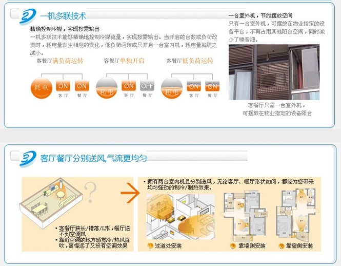 1臺室外機連接2臺室內機,室內機可選擇風管式室內機或掛壁式室內機,靈活對應